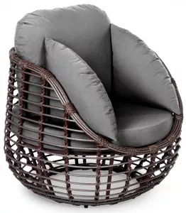 Плетеное кресло в комплекте с подушками, алюминиевый каркас, круглый искусственный ротанг, ручное плетение, толщина подушки: 150 мм. Кресло предназначено для использования на открытом воздухе. Характеристики