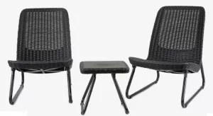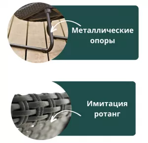 Компактный и стильный комплект отлично подходит на роль мебели для балкона, а так же для оформления зоны отдыха у бассейна. Металлические ножки обеспечивают устойчивость и амортизацию сидящего, маленький столик идеален для стаканов с коктейлем. Словом комплект мебели идеален для отдыха вдвоем