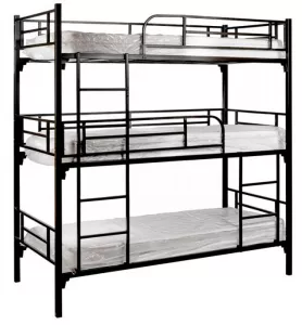 Трёхъярусная премиум кровать - это кровать, состоящая из трех ярусов и изготовленная из металла. Она используется в бытовках, хостелах, домах, общежитиях, гостиницах, спортивных залах и других местах, где нужно разместить несколько человек в одной комнате.