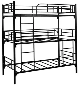 Трёхъярусная премиум кровать - это кровать, состоящая из трех ярусов и изготовленная из металла. Она используется в бытовках, хостелах, домах, общежитиях, гостиницах, спортивных залах и других местах, где нужно разместить несколько человек в одной комнате.