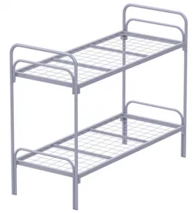 Двухъярусная металлическая кровать. Она часто используется в бытовках, хостелах, домах, общежитиях, гостиницах, спортивных залах и других местах, где нужно разместить несколько человек в одной комнате.