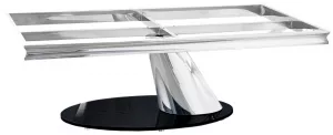 Подстолье для журнального стола из полированной нержавеющей стали (зеркальное) . В основании закаленное стекло толщиной 15 мм. Рама под столешницу размером 126х66 см. Характеристики