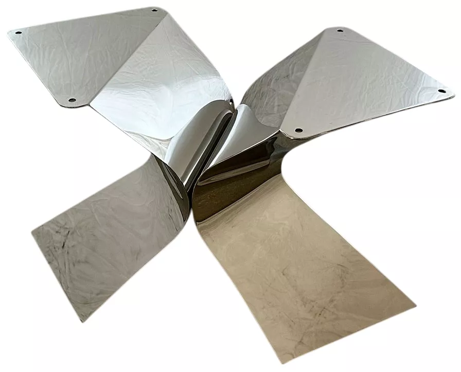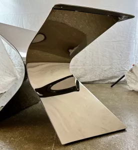 Подстолье для журнального стола из полированной нержавеющей (зеркальное) стали. Рекомендуемый размер столешницы: 150х80 см. Характеристики