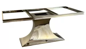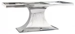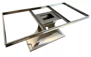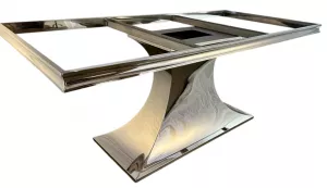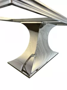 Подстолье из полированной нержавеющей стали (зеркальное). Лаковое покрытие. Рекомендуемый размер столешницы: 210х100 см. Характеристики