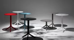 Функциональный и привлекательный стол с центральной колонной и тремя ножками идеально подходит как для внутренних интерьеров, так для открытых пространств: террасы ресторанов, летние площадки кафе и баров. Его отличительной чертой является возможность регулирования высоты, путем смены опоры. За счет этого обеденный стол может превратиться в кофейный. Большая цветовая палитра отделок состоит из ярких и теплых оттенков, что позволяет подобрать максимально нужный вариант в соответствии с потребностями.