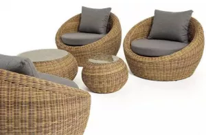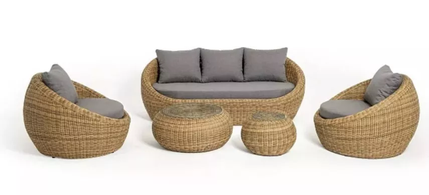 Комплект уличный с плетением из искусственного круглого ротанга для обустройства лаунж-зоны.