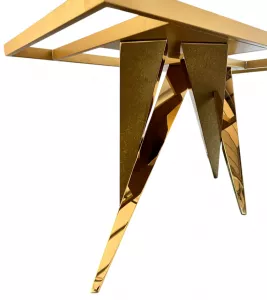 Подстолье из полированной нержавеющей (зеркальное) стали золотого цвета (нитрит титана). Рекомендуемый размер столешницы: 160х90 см Характеристики
