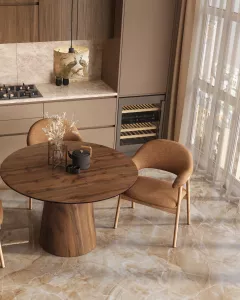 Благодаря диаметру 120 см и прочной конструкции, стол выдерживает нагрузку до 100 кг и комфортно размещает до 6 человек. Круглая форма делает его идеальным вариантом как для семейных обедов, так и для деловых встреч.