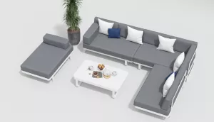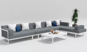 Уличная алюминиевая мебель из модулей с угловым диваном, белая