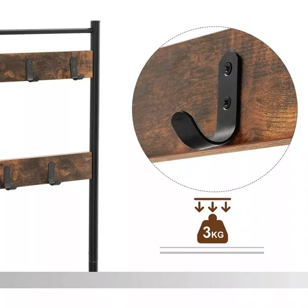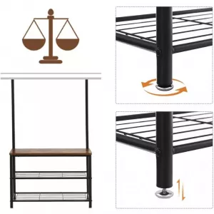 Грузоподъемность деревянной полки: 80 кг4 регулируемые ножки помогут вешалке быть устойчивой на коврах или неровных полах. В комплект входят 2 ремня против опрокидывания для безопасного использования