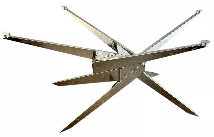 Подстолье из полированной нержавеющей стали (зеркальное). Лаковое покрытие. Рекомендуемый размер столешницы: 180х90.