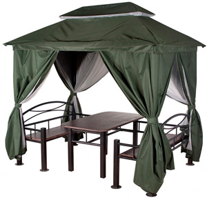 Универсальный размер беседки или шатра для дачи маленькой семьи - 3 х 3 метра. Когда времяпровождение на даче вертится в большей степени вокруг беседки, приемлемый вариант 6 -12 кв.м.