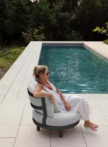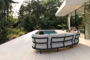 универсальный каркас, ткань подушек- серый олефин (водостойкая, устойчива к ультрафиолетовому излучению), чехлы черного цвета на все модули входят в комплект