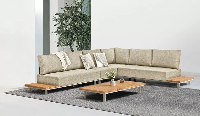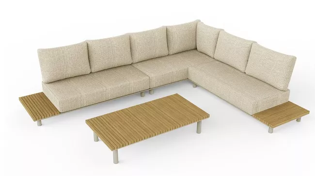 Бежевый угловой комплект из алюминия с тиком для дачи