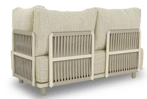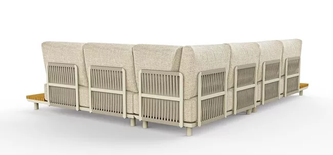 Набор имеет гладкую алюминиевую раму, а столешницы сделаны из тика. Роскошные подушки толщиной 22см, чехлы изготовлены из высококачественной, водоотталкивающей и устойчивой к погодным условиям ткани Sunproof®olefin
