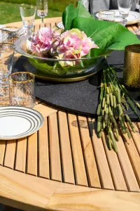 Плотная маслянистая природа означает, что тик очень мало впитывает влагу. Со временем тик состарится и приобретет серебристо-серую патину. Ничто не сравнится по внешнему виду с этим красивым медовым блеском и сглаженной привлекательностью. Сочетайте его с нашими стульями из тика или из алюминия с тиком, и вы приобретете комфорт и роскошь на долгие годы.