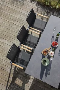столешница из тика- 25 мм, штабелируемые кресла, подлокотники из тика