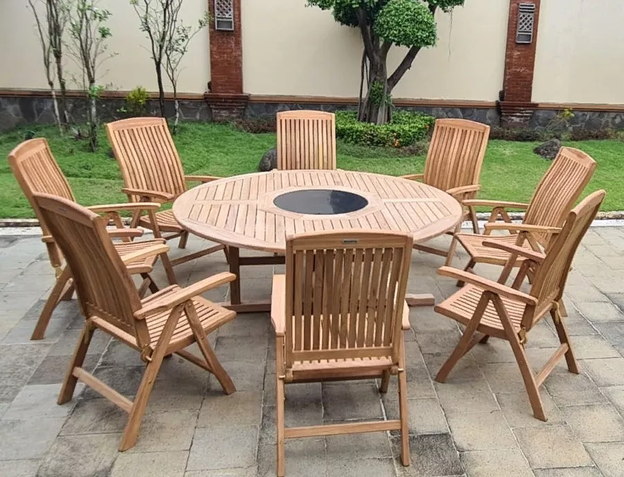 Стол поставляется в комплекте с гранитным сервировочным подносом (включая поворотную фурнитуру). Тик премиального качества.