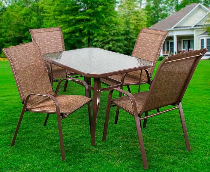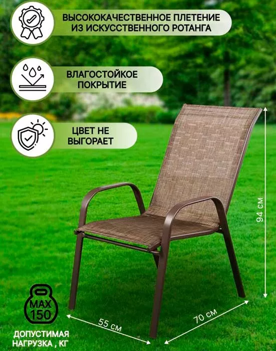 - Прочность и долговечность: Металлический каркас стола и стульев обеспечивает стойкость к атмосферным воздействиям и долгий срок службы мебели, что важно для дачных условий.