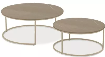 Комплект парных столиков из алюминия бежевого цвета с коричневой керамической столешницей. Столешница изготовлена из закаленного стекла с керамической печатью. Керамическая печать уникальная технология воспроизводства на стекле полноцветных изображений. Керамическая печать устойчива к ультрафиолету, изображение не выцветает со временем, не царапается при механическом воздействии, не смывается агрессивными химическими веществами. Характеристики