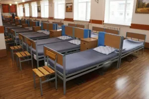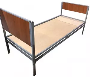 Из двух одноярусных кроватей собирается в одну двухъярусную с помощью пластиковых бужей, которые входят в пазы труб кроватей. Размер спального места 800х1900 мм
