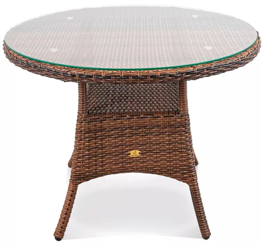 Круглый стол из искусственного ротанга со стеклом