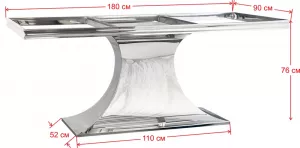 Подстолье из полированной нержавеющей стали (зеркальное). Лаковое покрытие. Рекомендуемый размер столешницы: 210х100 см. Характеристики
