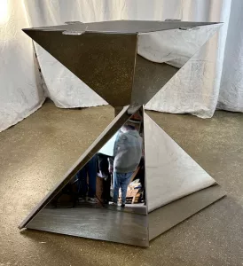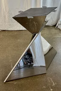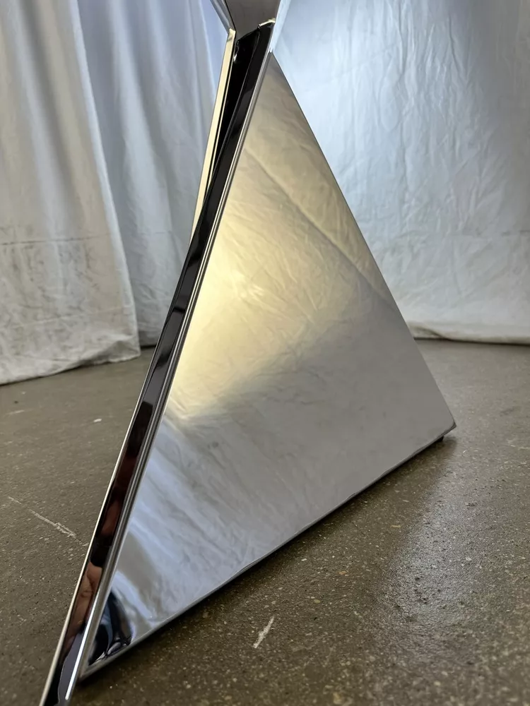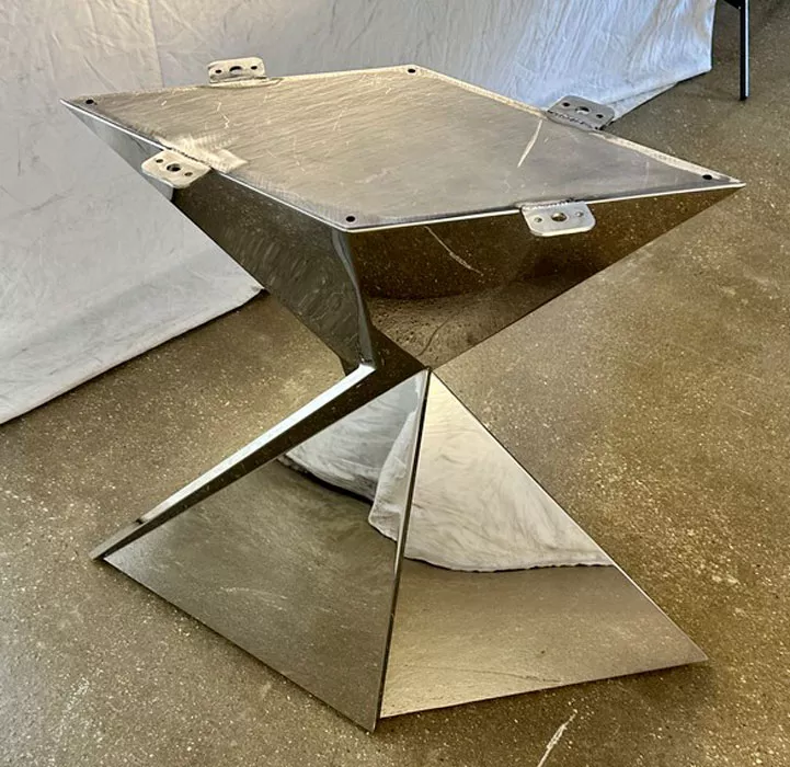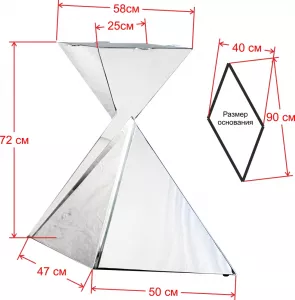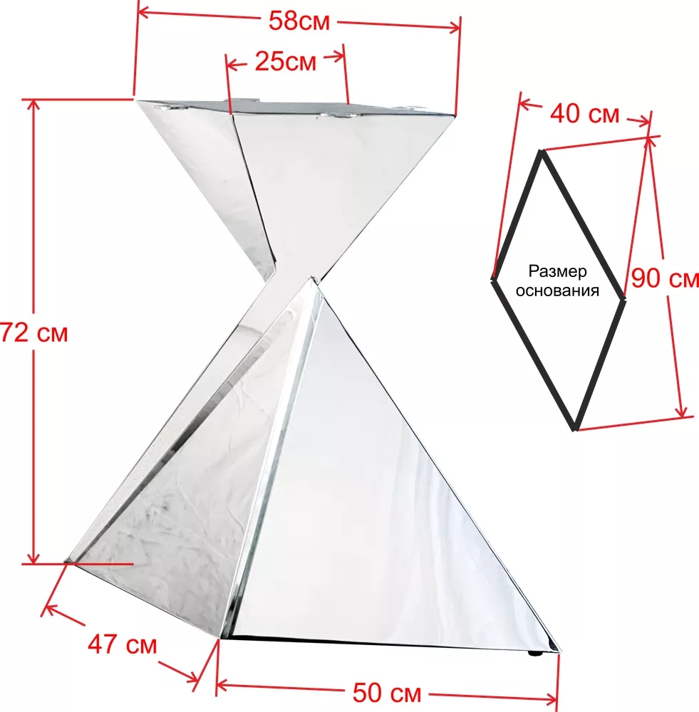 Пристенное подстолье-консоль из полированной нержавеющей стали (зеркальное). Лаковое покрытие. Рекомендуемый размер столешницы: 120х50. Характеристики
