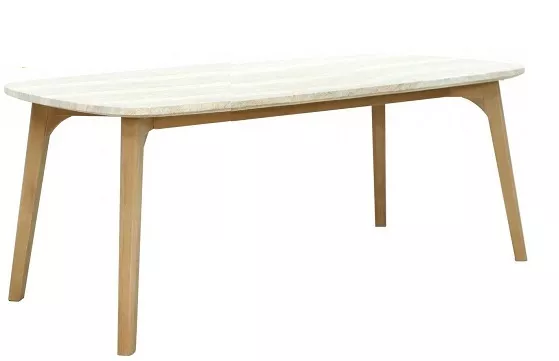 Столешница обеденного стола выполнена из искусственного камня Travertine.