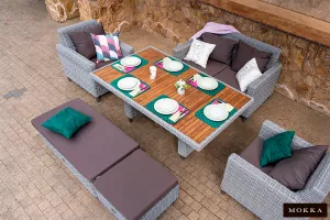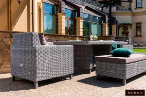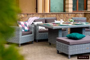Комплект плетеной мебели из коллекции для террасы идеальный выбор для оформления открытых зон кафе и ресторанов. Строгий дизайн в современном стиле впишется в любой экстерьер и станет его центром.