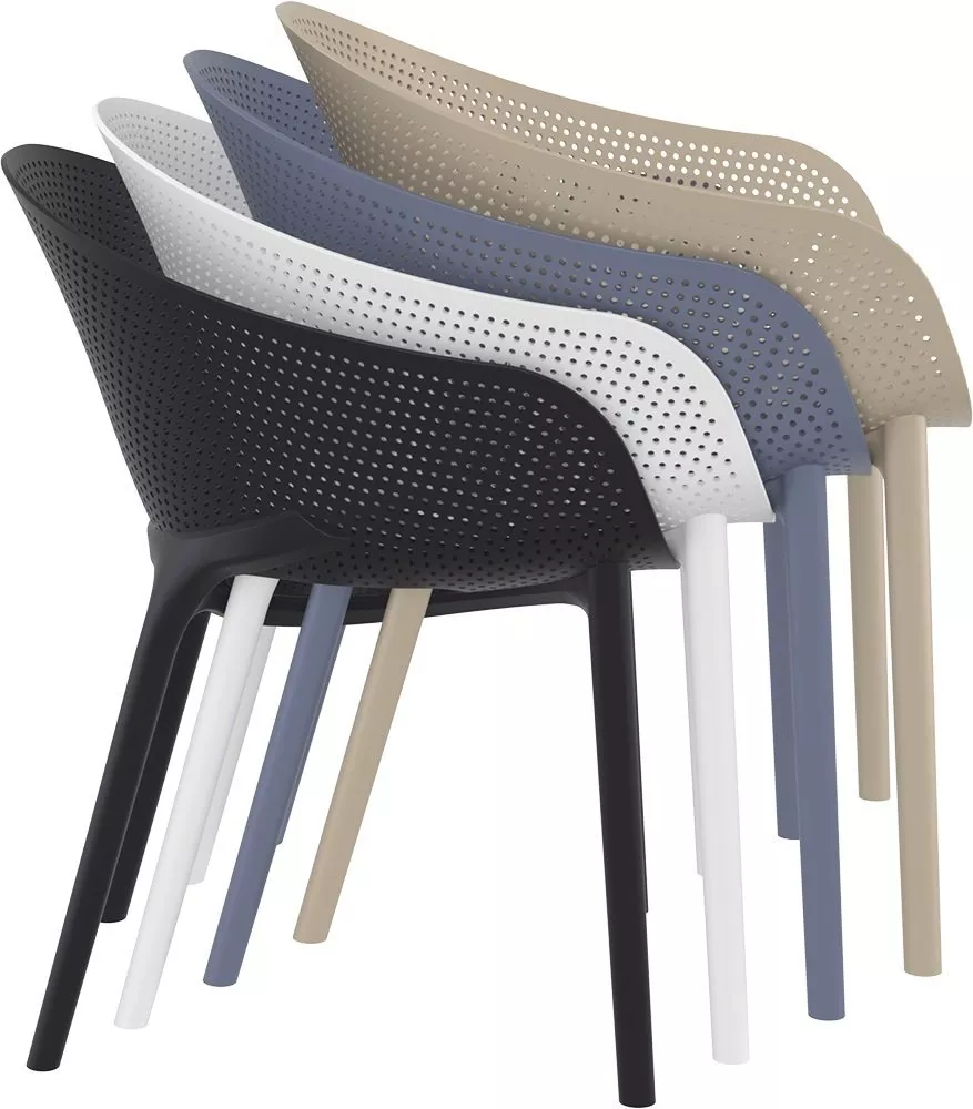 Комплект состоит из квадратного стола и двух кресел. Квадратный пластиковый стол со столешницей из погодостойкого пластика и каркасом из металла. Легкое, как сам воздух, но при этом прочное кресло изготавливается из полипропилена, упрочненного стекловолокном, полученным с использованием новейшего поколения технологий формования пластмасс под давлением.