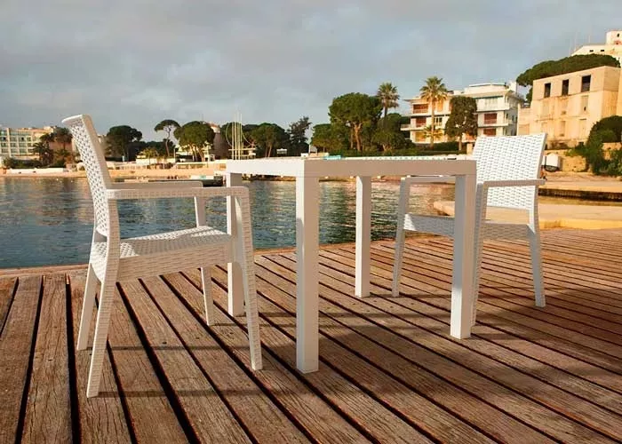 Пластиковое плетеное кресло изготовлено из прочного погодостойкого пластика, армированного стекловолокном. Кресла станут отличным выбором для обстановки фуд-кортов, кафе, ресторанов и баров. Благодаря использованию высококачественных материалов, они долгое время не теряют своего привлекательного внешнего вида, даже несмотря на активную эксплуатацию. Подходит для использования на открытом воздухе и в помещении. Характеристики