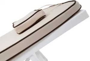 Толщина 5см. Холллофайбер (не поролон!) - не промокает. С подушкой. Съёмный чехол на молнии. В наличии красно-белый цвет, бело-синий, бежевый. Размер упаковки 118 х 58 х 11см