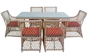 Легкое ажурное плетение в цвете персиковый пух, эргономичная форма спинки и подлокотников кресел и соломенный цвет мебели станут центром притяжения взгляда в любом интерьере или экстерьере. Благодаря компактным размерам гарнитур прекрасно подойдет для небольших балконов и террас