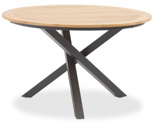 Круглый алюминиевый стол с красивой тиковой столешницей и квадратными ножками+ 4 кресла. Каждая деталь имеет современную эстетику, стильные детали на ножках и рамах, а также превосходный комфорт для сидения. Стулья из алюминия с тиковыми подлокотниками и сиденьем из текстилена стопируются, что упрощает хранение.