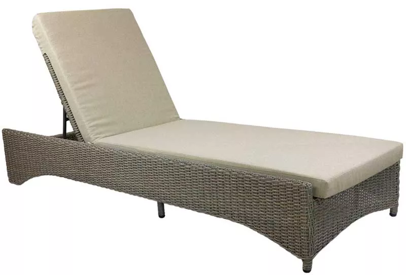 Лежак с регулируемой спинкой выполнен из искусственного ротанга в натуральном цвете на алюминиевом каркасе. Это легкий лежак, оборудованный колесиками, поэтому он отлично подойдет для установки на пляже или у бассейна, где его необходимо часто перемещать.