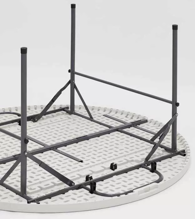 Стол круглый, 150*74 см. Для каркаса используется стальная труба особой прочности, а столешница выполнена из 100% не переработанного полиэтилена HDPE (полиэтилен высокой плотности). Считается одним из более безопасных видов пластика. HDPE пластик выдерживает высокие нагрузки, не трескается при ударной нагрузке, эластичен в диапазоне температур от 70 до +100 °С.