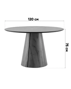 Благодаря диаметру 120 см и прочной конструкции, стол выдерживает нагрузку до 100 кг и комфортно размещает до 6 человек. Круглая форма делает его идеальным вариантом как для семейных обедов, так и для деловых встреч.