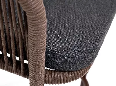 Барный стул изготовлен на стальном каркасе коричневого (RAL8016) цвета, оплетен вручную эластичными синтетическими лентами из высокопрочных полиэфирных волокон, коричневого оттенка, размер стула: 590х510х1070 мм.
