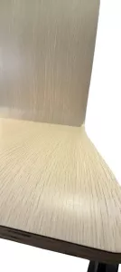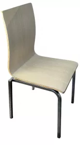 Стул металлический. Каркас - полированная нержавеющая сталь, спинка и сиденье - жесткое. Сиденье - ламинированная фанера. Характеристики