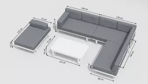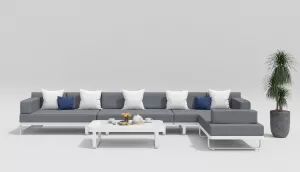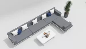 Уличная алюминиевая мебель из модулей с угловым диваном, белая