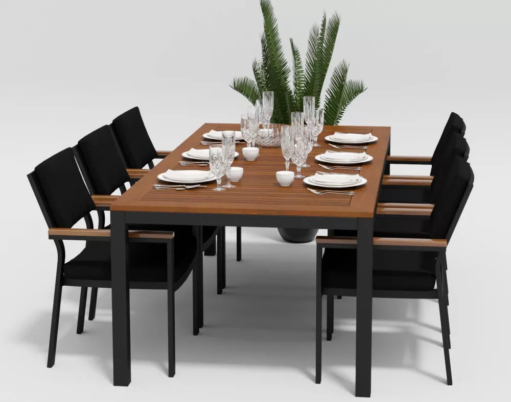 Уличная мебель из металла и тик стол 220 см и стулья на 6-х