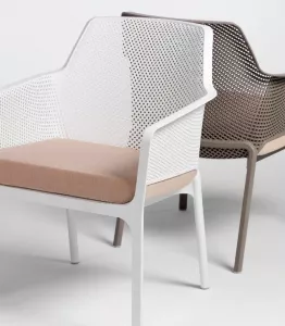 Свежий и расслабляющий моноблок украшен перфорированным рисунком, равномерно распределенным по всей поверхности кресла, результатом сложного трехмерного моделирования и фрезерования.
