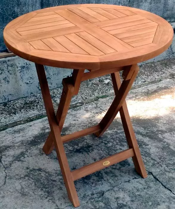 Уличный круглый обеденный стол из тика складной 70 см купить