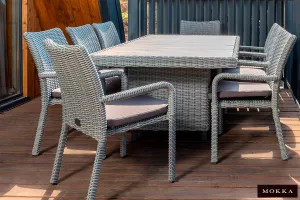 Возможность собрать гарнитур в зависимости от площади террасы делает коллекцию идеальным выбором для оформления открытых зон кафе и ресторанов. Строгий дизайн в современном стиле впишется в любой экстерьер и станет его центром