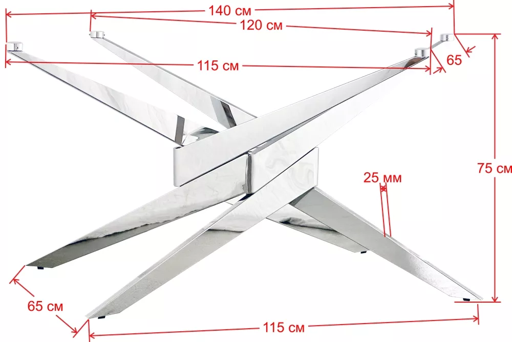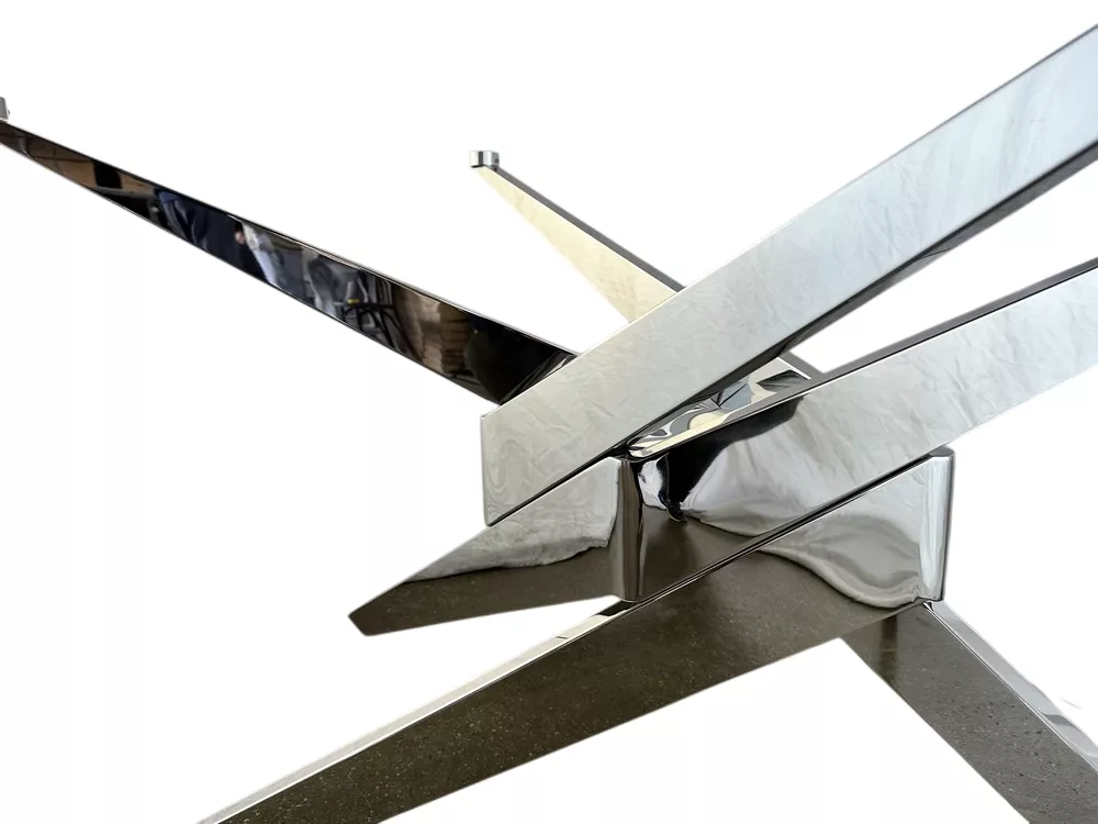 Подстолье из полированной нержавеющей стали (зеркальное). Лаковое покрытие. Рекомендуемый размер столешницы: 180х90.
